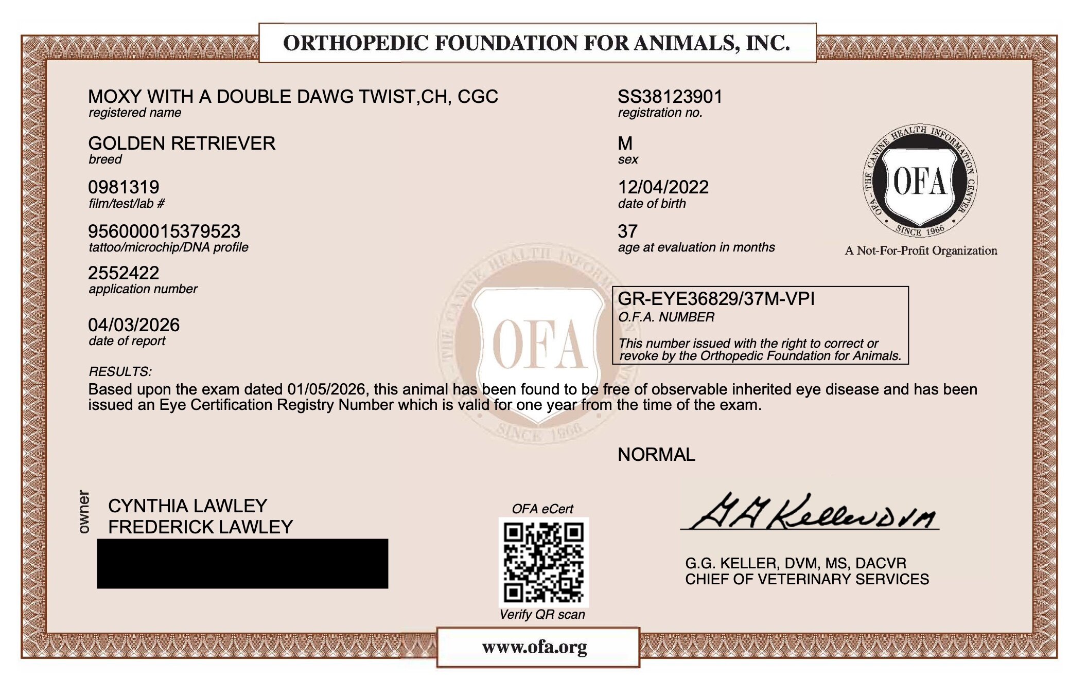 - Canine Health CHIC MAR2025 204965